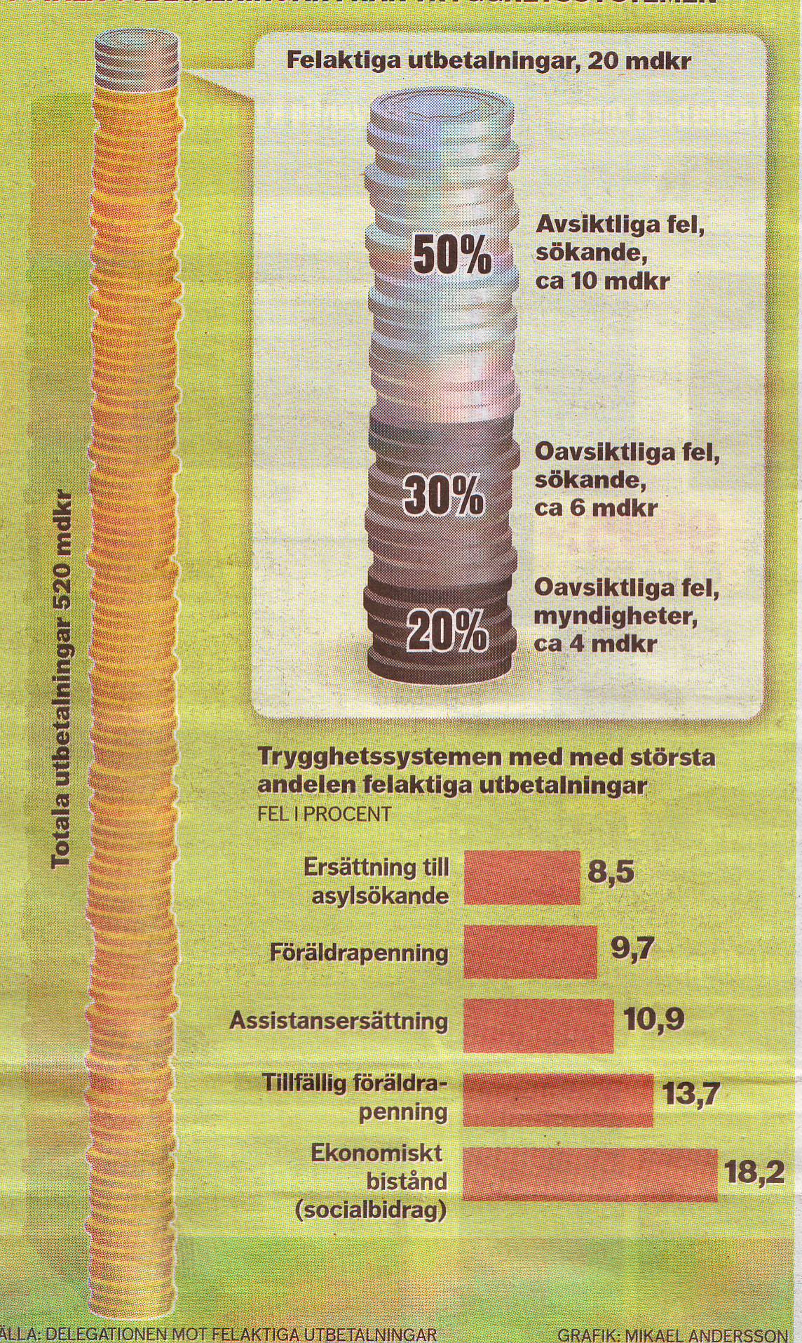 福祉の支給が正常に行われているか否かの国の調査機関である“不当支払代表団(Delegationen mot felaktiga utbetalningar)”が調査の結果を公表した。今回の調査は今までにない大規模のものであった。