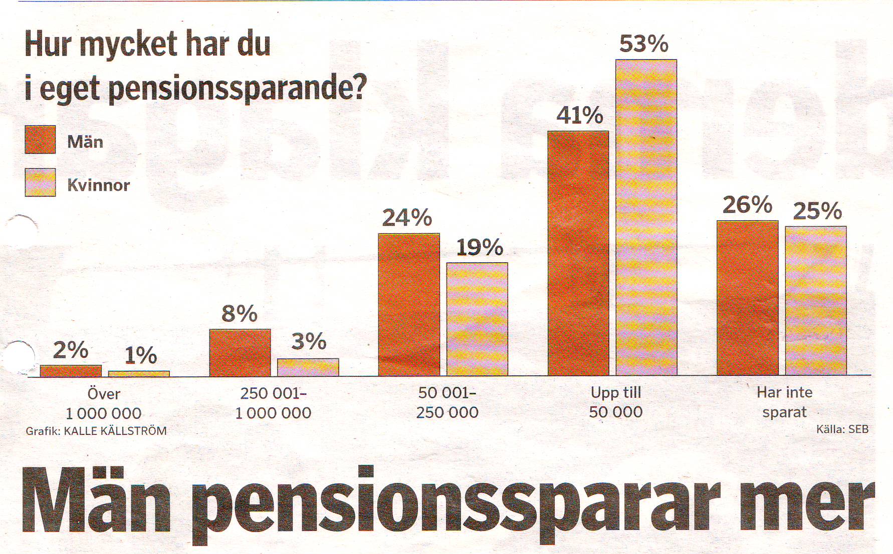 スウェーデンは個別納税が採用されており夫婦であっても個別の納税や年金制度が施行されています。年金は基礎年金と就業年数や収入レベルによって決まる追加年金からなっていますが、これに更に任意の保険があります。会社や団体で加入している保険(団体年金保険)や就職契約の際に雇用主側に任意保険加入を条件としたりボーナスの代わりに保険積立してもらう場合もあります。 この他に個人的に年金保険を積立をしている人もおりますが、保険業界が出した年金保険積立統計によると、年金生活の目的の為に個人で保険積立をしない人が約25%、4人に一人、もいるとのことです。他の先進国と比較してスウェーデン人は公共の年金積立が充実しているために個人的な年金貯蓄をしない人の率は多いと思われ4ます。(注:この統計には株式証券や銀行貯蓄は含まれてはいない)